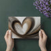Make a unique artistic statement with this conceptual wallpaper, featuring a heart shape formed by sweeping, hair-like strands in shades of black, brown, and gold. The dynamic, swirling lines create a sense of movement and raw emotion, while the metallic gold highlights add a touch of luxury and depth. The texture looks almost like a charcoal or pastel sketch, full of energy and passion. This illustration captures the complexity of love and art, perfect for creating a dramatic focal point in a master bedroom, living room, or art studio.