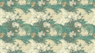 Mural artístico de olas japonesas con peonías blancas, papel pintado oriental en teal y dorado, decoración Chinoiserie moderna, tamaño personalizado, fácil de pegar