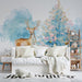 The Blue and Pink Watercolor Christmas Mural Wallpaper features a beautifully stylized deer and a decorated Christmas tree set against a backdrop of flowing blue and pink watercolor washes. The color palette—soft baby blue, pale pink, and gold—is distinctly modern and gentle, deviating from traditional bold Christmas colors. The minimalist white background and flowing watercolor textures create a clean, elegant, and whimsical holiday scene. This mural is ideal for a modern nursery, a clean minimalist bedroom, or a space seeking a feminine and artistic holiday touch.