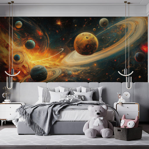 Agrega un margen de seguridad de 6 a 10 cm. El área total se calcula en metros cuadrados y se redondea al número entero más cercano.Blue Gas Giant Ray of Light Mural Wallpaper | Azure Planet, Prominent Rings, Sci-Fi Scene