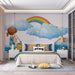 Cartoon Rainbow Creation Scene Mural Wallpaper | Whimsical Art, Fluffy Clouds, Children's Fantasy