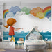 Child Painting Rainbow Over Water Mural Wallpaper | Whimsical Clouds, Vibrant Ocean, Imagination Art
