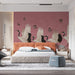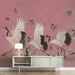 The Dancing Cranes and Lotus Mural Wallpaper is a graceful and rhythmic piece of chinoiserie art. It depicts a repetitive row of five red-crowned cranes mid-stride, moving in a continuous, elegant procession across a field of subtle lotus flowers. The scene is set against a muted mauve-pink background patterned with subtle, faded clouds. The soft pink butterflies fluttering above add a whimsical, light touch to the formality of the cranes' march. This mural is ideal for a long hallway, a master closet, or a traditional bedroom seeking a subtle, patterned statement.