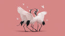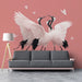 Dancing Cranes Simplicity Mural Wallpaper | Red Crowned Birds, Minimalist Pink Backdrop, Serene Avian Art
