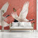 Flying Cranes Cloud Pattern Mural Wallpaper | Asian Style, Red and White Contrast, Butterfly Accent