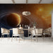 Agrega un margen de seguridad de 6 a 10 cm. El área total se calcula en metros cuadrados y se redondea al número entero más cercano.Golden Ringed Planet with Nebulae Mural Wallpaper | Fiery Space Horizon, Cosmic Glow, Warm Tones