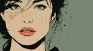 The Gritty Urban Fashion Sketch Mural Wallpaper is an artistic and atmospheric artwork. It features a detailed portrait of a woman with a wistful expression and delicate freckles, rendered in a raw, sketch style against a muted sage green background. The splattered ink effects and fluid linework evoke a sense of modern street art and creative freedom. This mural is ideal for a creative entryway, an edgy home office, or a chic contemporary lounge.