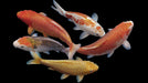 Celebrate luck and timeless elegance with this vibrant wall mural featuring a school of imperial koi fish. Set against a deep, dramatic black background, each fish is rendered with intricate detail and brilliant shades of gold, orange, and white. This stunning composition symbolizes harmony and prosperity, making it a powerful artistic statement for modern foyers, high-end study, or executive offices seeking an infusion of positive energy.