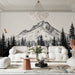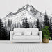 Majestic Mountain & Pine Forest Pen Sketch Mural Wallpaper | High Contrast Stippling Landscape