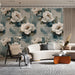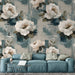 The Modern Floral Mural Wallpaper is a sophisticated and artistic piece of art. The design features a repeating pattern of large, elegant flowers in soft white and blush tones, set against a beautifully distressed, abstract background of dusty blue and gray. The painterly texture and rich colors create a sense of modern artistry and refined elegance. This mural is a perfect choice for a chic dining room, a modern living room, or an elegant master bedroom that seeks a unique, artistic backdrop.