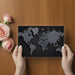 The Monochrome Halftone World Map Mural Wallpaper is a striking, graphic piece that merges cartography with retro printing techniques. The continents are formed by a dense arrangement of white dots (halftone or dot matrix style) against a textured, dark gray/black background. The high contrast and repeating pattern create a visually engaging, somewhat retro-digital aesthetic. The clean, minimalist presentation ensures it remains sophisticated despite its graphic nature. This mural is perfect for a modern office, a creative study, or a contemporary home seeking a graphic and monochromatic focal point.