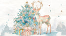 The Pastel Deer and Gifts Watercolor Mural Wallpaper is a beautiful, whimsical illustration rendered in a soft watercolor style. A spotted deer in muted pink and cream stands next to a decorated, teal-toned Christmas tree surrounded by pastel-colored gifts. The colors are light and airy, with a soft focus and an almost dreamlike quality. The aesthetic is modern, gentle, and highly artistic. This mural is ideal for a nursery, a sophisticated bedroom, or a space where a delicate, artistic, and non-traditional holiday theme is desired.