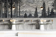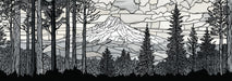Stained Glass Mountain Forest Mural Wallpaper | Black and White Art Deco Landscape