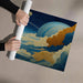 Textured Planet and Cloudscape Mural Wallpaper | Artistic Fiber Look, Blue and Gold Contrast, Celestial View