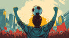 The Urban Victory Celebration Mural Wallpaper is a powerful, retro-styled comic illustration of communal triumph. A hero-athlete stands with his arms raised and the ball atop his head, overlooking a massive, cheering crowd and a stylized, geometric city skyline. The palette is dominated by sharp contrasts between teal/blue and fiery red/yellow, conveying intense passion and energy. The scene feels like the climax of a huge public celebration or a political rallying point. This mural is ideal for a large bedroom, a game room, or a space celebrating team spirit and urban culture.