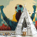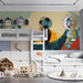 Vivawalls.com’s Tips: Pair the strong, graphic lines with industrial or minimalist furniture in metal and dark wood. Use the dominant teal and red colors in large, solid color blocks (e.g., a teal couch) to anchor the complex artwork.