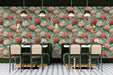 The Vintage Teal Pink Peony Oil Painting Mural Wallpaper features a lush, repeating pattern of pink and coral peonies on a textured teal background. The artwork mimics the brushstrokes of an oil painting, adding depth and richness to the floral design. The classic color combination and painterly style make this mural a sophisticated choice for a restaurant or dining room.