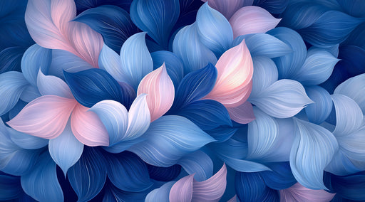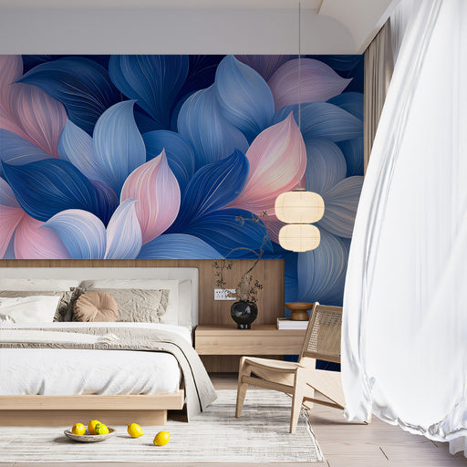 Fond d'Écran Mural Abstrait Bleu & Rose à Fleurs | Art de Pétales en Couches Oniriques