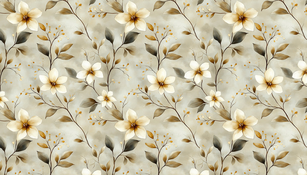 The Abstract Floral Mural Wallpaper is a delicate and timeless piece of art. The design features a repeating pattern of stylized flowers and branches in a soft palette of creamy off-white, muted grays, and warm beige. The gentle, painterly texture and harmonious color blending create a sense of serene tranquility and romantic charm. This mural is an ideal choice for a calming dining room, a peaceful living room, or a charming nursery that seeks a touch of classic, timeless beauty.