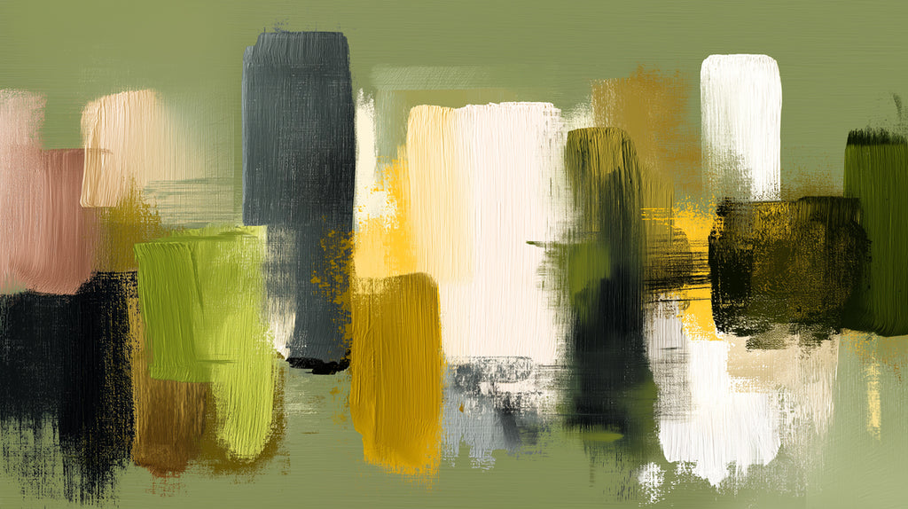 The Abstract Vertical Mural Wallpaper is a sophisticated and artistic piece of art. The design features a large-scale composition of tall, layered brushstrokes in a refined palette of earthy olive, warm gold, cool gray, and deep black. The dynamic, vertical texture and abstract shapes create a powerful sense of depth and movement, evoking the feeling of a stylized cityscape or a serene forest. This mural is an excellent choice for a modern bedroom, a chic dining area, or an elegant home office that seeks a bold, artistic focal point.