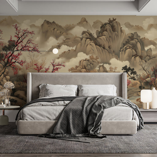 Ajoutez une marge de sécurité de 6 à 10 cm. La surface totale est calculée en mètres carrés et arrondie à l'entier le plus proche.Chinese Plum Blossom Mural Wallpaper | Minimalist Oriental Landscape