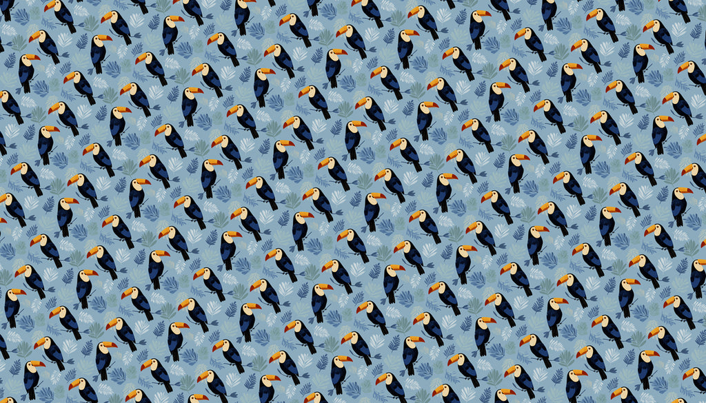 Ajoutez une marge de sécurité de 6 à 10 cm. La surface totale est calculée en mètres carrés et arrondie à l'entier le plus proche.Whimsical Toucan Pattern Mural Wallpaper | Modern Tropical Birds