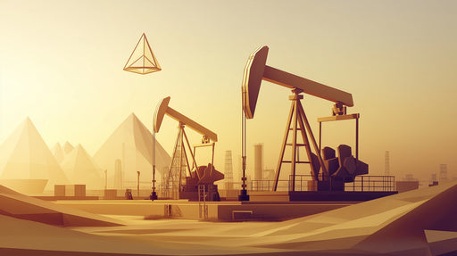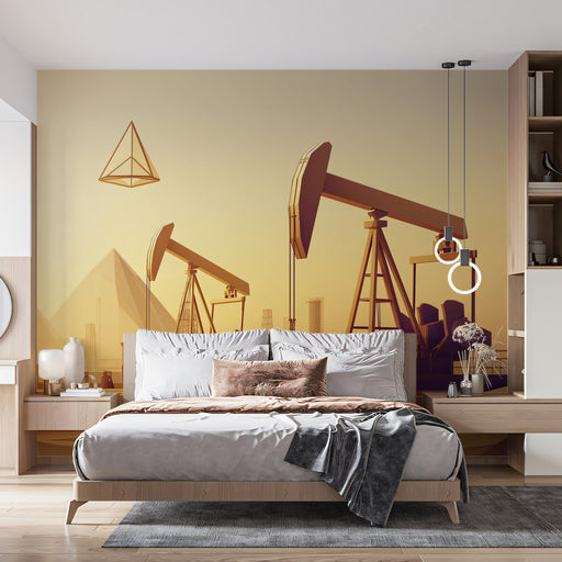 Abstract Desert Oil Rigs Mural Wallpaper | Stylized Industrial Landscape with Pyramids