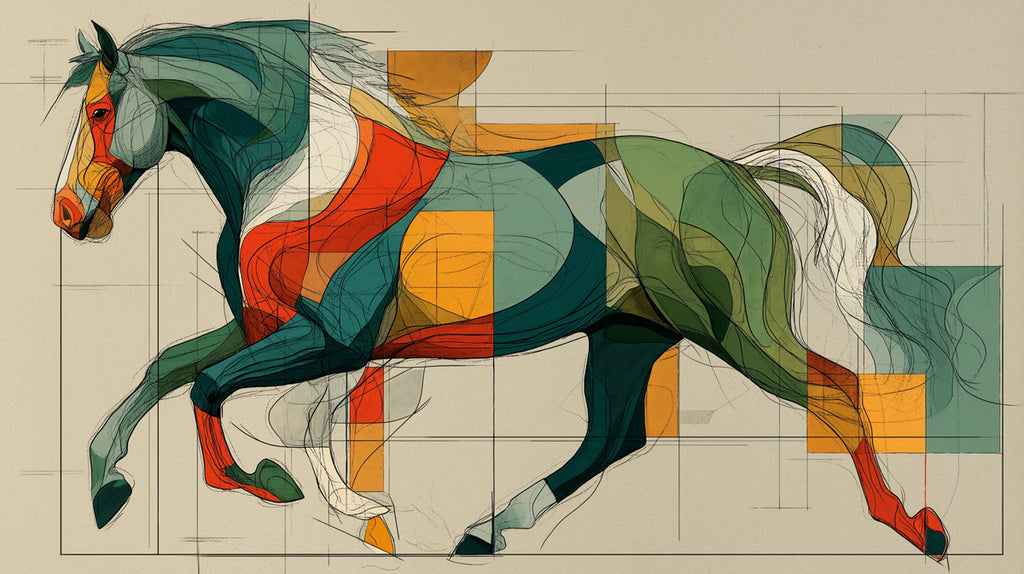 Ajoutez une marge de sécurité de 6 à 10 cm. La surface totale est calculée en mètres carrés et arrondie à l'entier le plus proche.Fond d'écran de galop de cheval abstrait | Art du mouvement équin géométrique dynamique