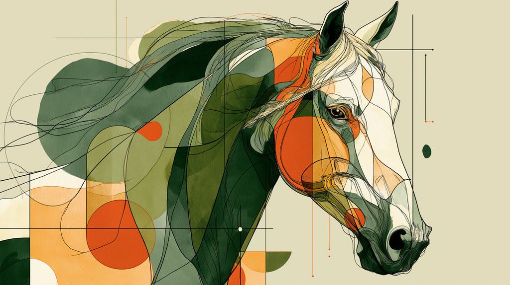 Ajoutez une marge de sécurité de 6 à 10 cm. La surface totale est calculée en mètres carrés et arrondie à l'entier le plus proche.Fond d'écran portrait de tête de cheval abstrait | Art équin géométrique dynamique