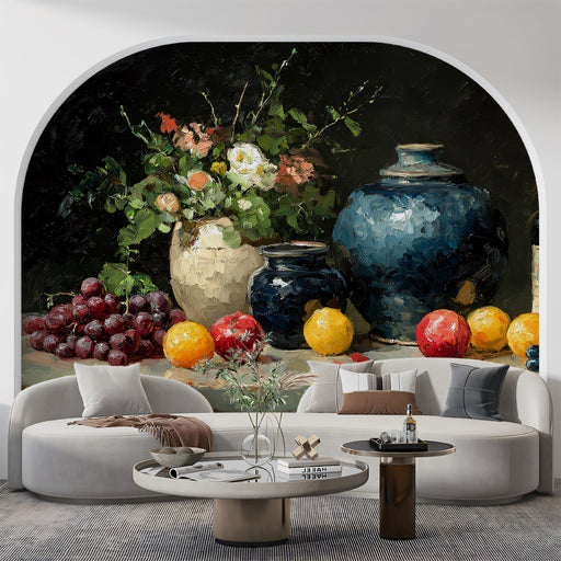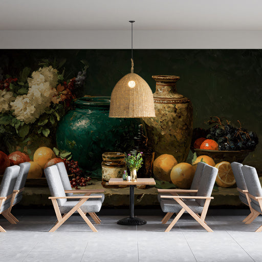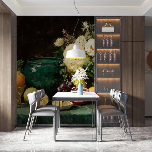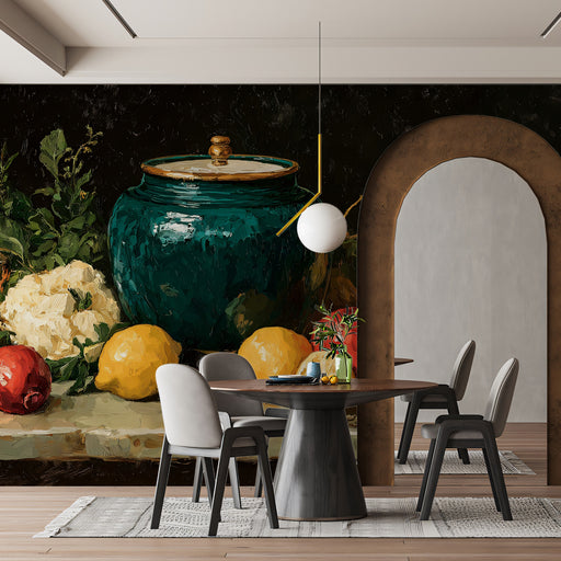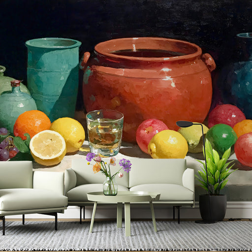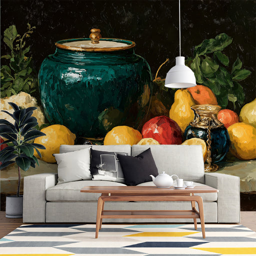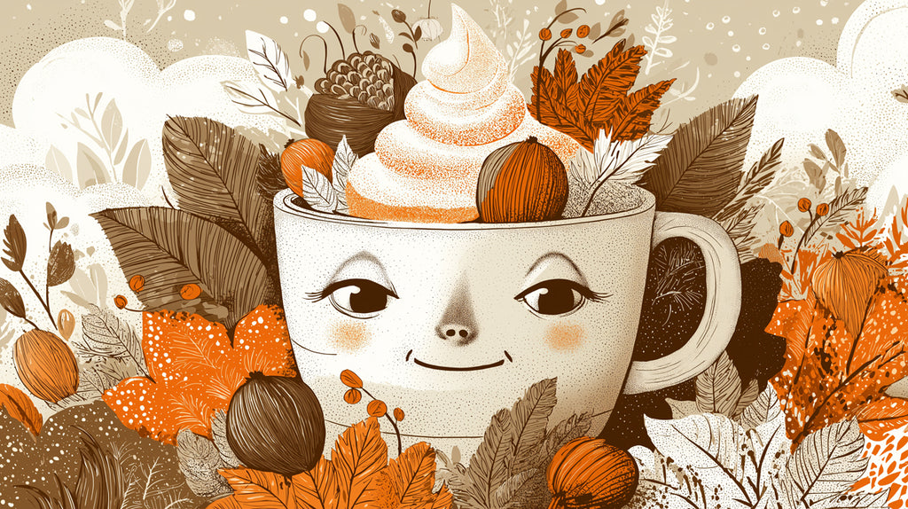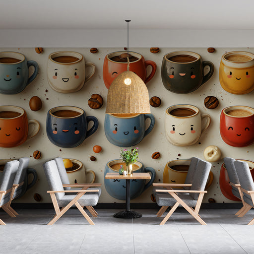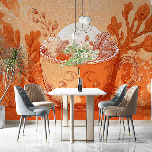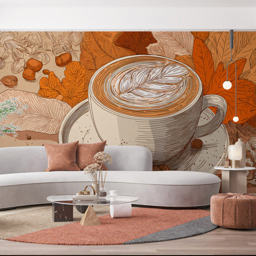 Apportez une touche de sourire à votre espace avec ce papier peint irrésistiblement charmant, mettant en vedette un adorable personnage en forme de tasse souriante remplie d'une généreuse spirale de crème fouettée et décorée de noix et de feuilles automnales. La tasse, avec ses joues rosées et son expression joyeuse, est nichée au milieu d'un luxuriant ensemble de feuillages stylisés aux tons riches d'orange, de brun et de crème. L'arrière-plan est une texture douce et crémeuse, rehaussant l'ambiance chaleureuse et fantaisiste. Cette illustration évoque un sentiment de joie, de confort et de l'esprit délicieux des boissons automnales, idéale pour créer une atmosphère chaleureuse et accueillante dans un salon, les chambres d'enfants, ou tout autre espace qui aime les personnages mignons et le charme saisonnier.