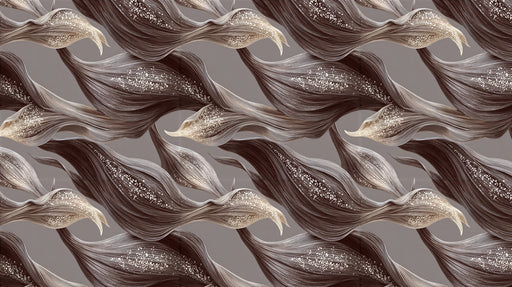 Afficher tous les détailsPapier peint mural luxueux à motif de feuilles ondulées | Brun moka, texture scintillante, fluidité moderne