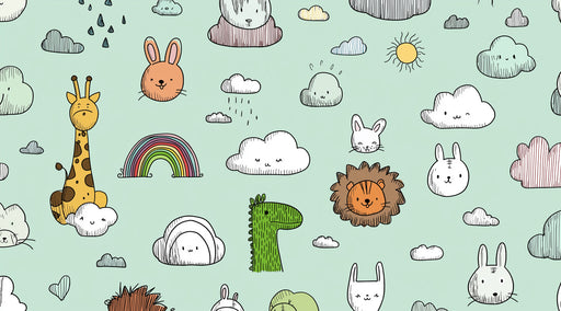 VIVAWALLSLe motif Kawaii Safari Animal Doodle est un dessin doux et joyeux. Ce motif répétitif, présent sur toute la surface , met en scène des têtes d'ani...