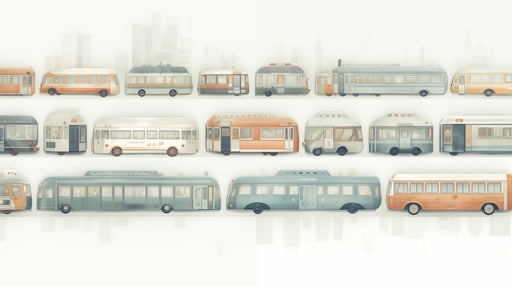 Afficher tous les détailsCollection de fresques murales de bus vintage | Transport rétro, illustration détaillée, paysage urbain délavé