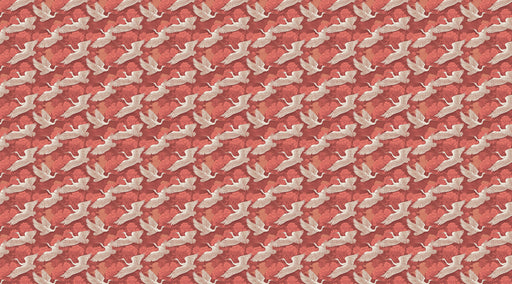 Afficher tous les détailsPapier peint mural à motif répétitif de grues corail | Rose monochrome, oiseaux éthérés, chinoiseries texturées