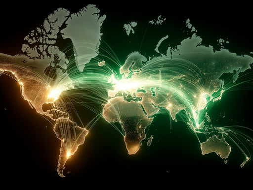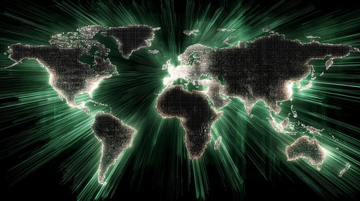 Le papier peint mural vert « Réseau mondial de données » offre une représentation élégante et moderne des communications mondiales. La carte du mon...