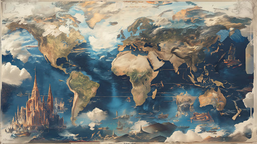 La fresque murale « Carte du monde fantastique » est une œuvre d'art onirique et surréaliste. La carte du monde y est représentée par des continen...