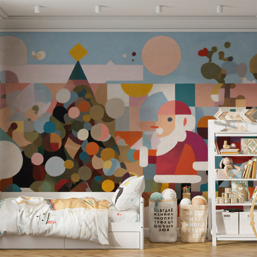 Afficher tous les détailsAbstract Santa and Tree Mural Wallpaper | Color Block Cubism, Pastel and Earthy Hues, Minimalist Festive