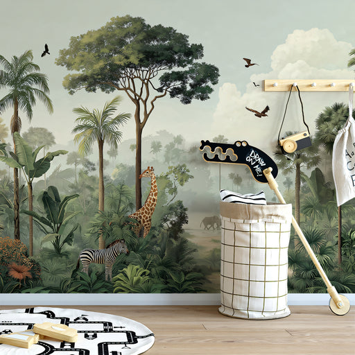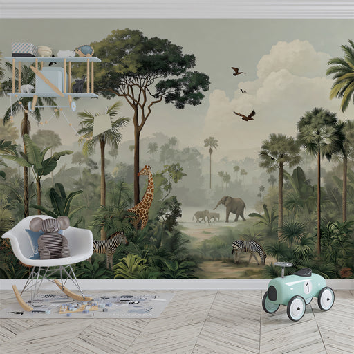 Afficher tous les détailsVintage Tropical Mural Wallpaper | Majestic Wildlife & Misty Landscape