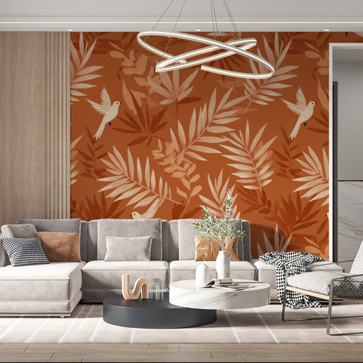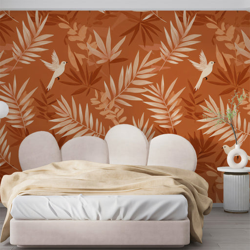 Afficher tous les détailsWarm Botanical Bird Mural Wallpaper | Terracotta & White Print