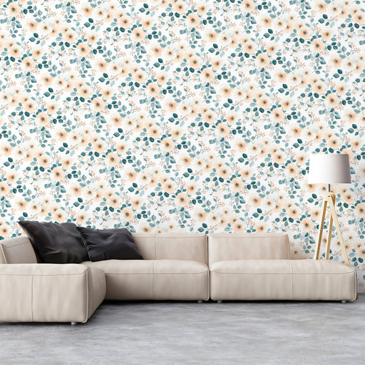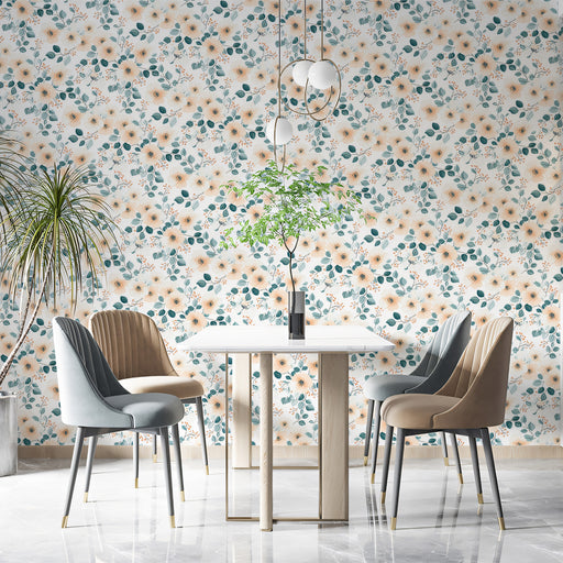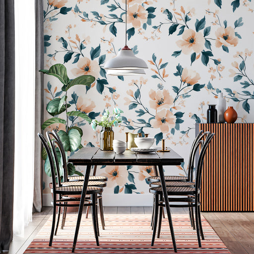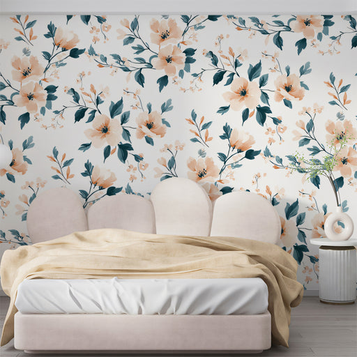 Afficher tous les détailsSprawling Watercolor Floral Mural Wallpaper | Peach & Teal