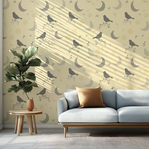 Afficher tous les détailsGraphic Bird & Moon Mural Wallpaper | Gray & Pale Yellow
