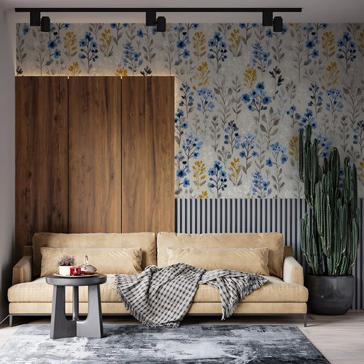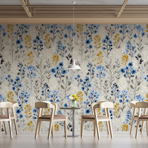 Afficher tous les détailsDelicate Wildflower Pattern Mural Wallpaper | Blue & Gold