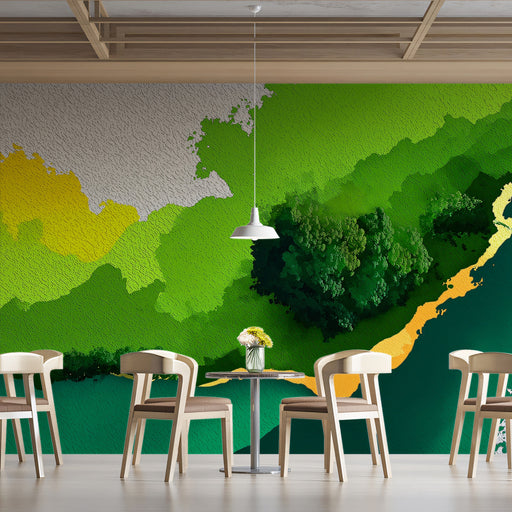 VIVAWALLSThe Abstract River Mural Wallpaper is a vibrant, graphic interpretation of a natural landscape. The design features a bold, top-down view of a flow...