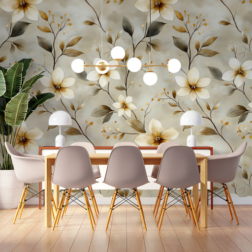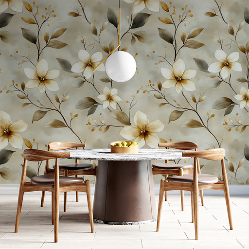 VIVAWALLSThe Abstract Floral Mural Wallpaper is a delicate and timeless piece of art. The design features a repeating pattern of stylized flowers and branch...