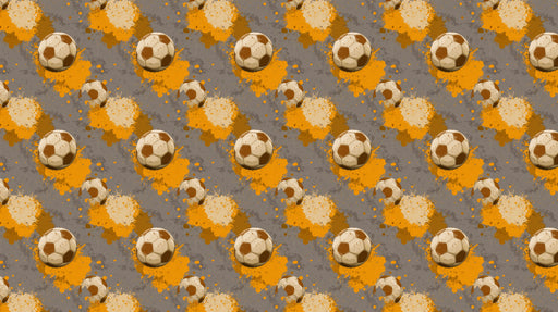 Afficher tous les détailsPapier peint mural à motif de ballon de football vieilli | Motif répétitif, éclaboussures grunge, tons sépia et orange