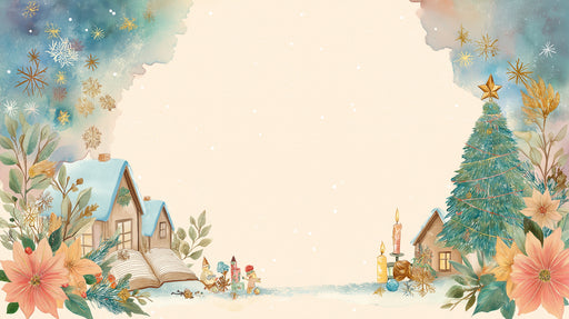 VIVAWALLSLe papier peint mural « Coin Village Aquarelle Douce » représente une scène de Noël artistique et délicate, avec un grand espace central dégagé. L...