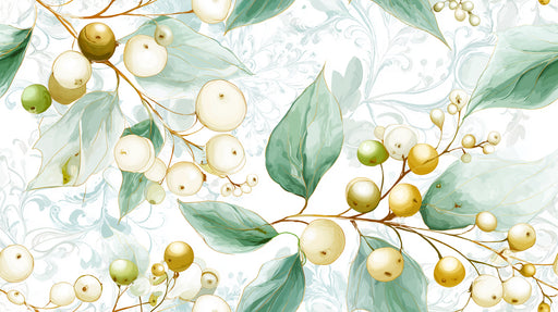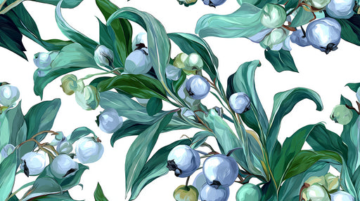 Afficher tous les détailsPapier peint mural lumineux Baies et Feuilles | Illustration botanique à l'aquarelle
