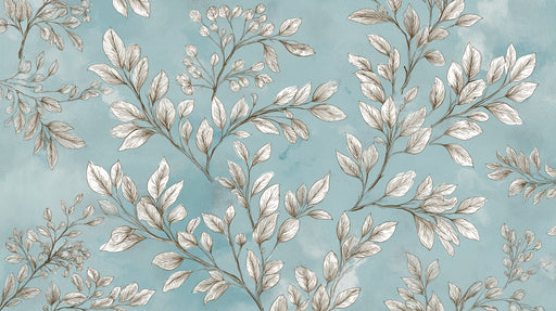 Tropica AtelierLe papier peint mural Aqua Bloom & Leaf présente un motif botanique dynamique et détaillé, mettant en scène des branches luxuriantes aux feuil...