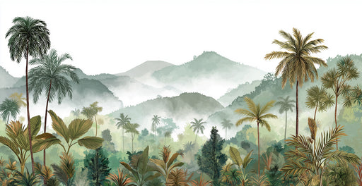 Afficher tous les détailsPapier peint mural jungle tropicale | Végétation luxuriante et montagnes brumeuses