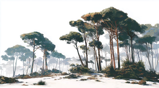 Afficher tous les détailsPapier peint mural impressionniste forêt d'hiver | Pins enneigés peints